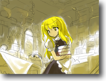 มาริสะ 「หนังสือในชั้นมันคงถล่มลงมาทับจนจมมิดเลยล่ะมั้ง」